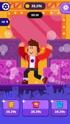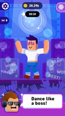 1、来跳个三天三夜吧!游戏中你可以尽情自由的进行跳舞,把自己最酷的舞蹈给每一名观众展示,让他们迅速成为你的粉丝,为你疯狂呐喊