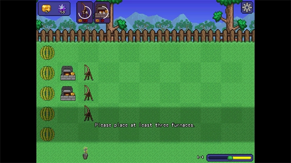 将塔防玩法与泰拉瑞亚的元素相结合,创新性地将植物作为防御单位,怪物作为攻击方。
