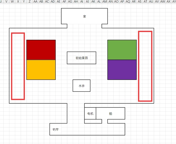第二个原因是尽量把鹿哥牵制在初始菜园附近。这样的话,夜晚你就不需要格外注意鹿哥的存在了,对着农场绕圈,只走外围,完全不用担心遇到鹿哥。中间的菜园直接不要了,让鹿哥守着菜园。鹿哥守右下角就去左上角种植。
