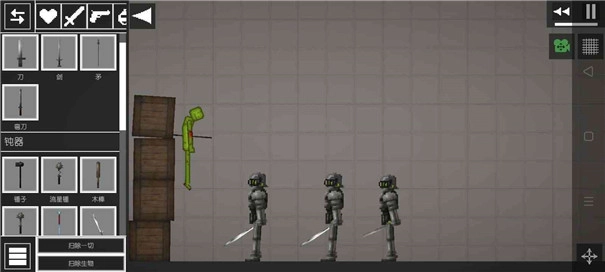 4、接着按下键盘上的按钮,这样小人就可以把武器拿住了。