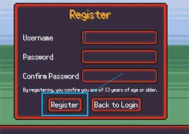 在本站安装并启动游戏后,点击【Register】按钮完成账号注册。