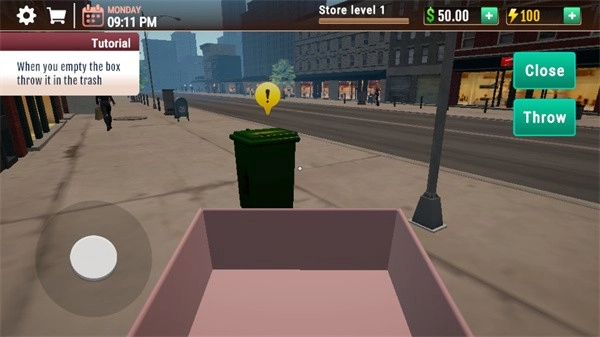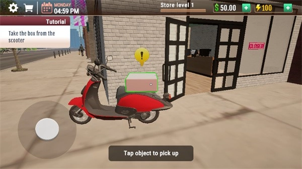 1、玩家进入游戏后,需借助虚拟按键操控角色移动,使角色对准电动车的包裹。