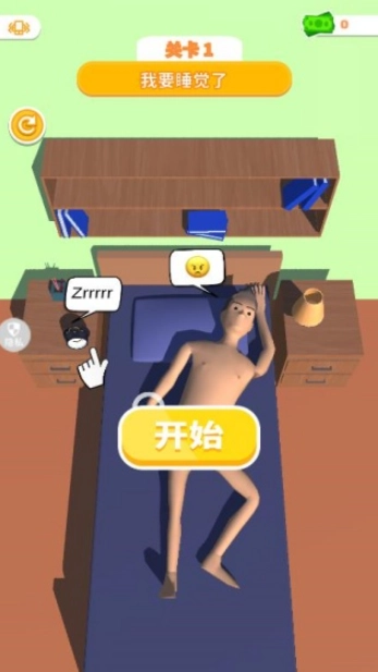 2、移动闹钟,将它推走,烦躁的声音终于消停了,可以过关,继续睡觉;