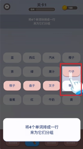 3.关卡给出了一系列的词汇,通过挪动词汇,将同种类型的词汇并排放置。