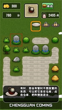 同时,玩家还可以利用树木等设置陷阱困住城管,城管被封死后会变成墓碑,墓碑可升级为教堂等建筑。