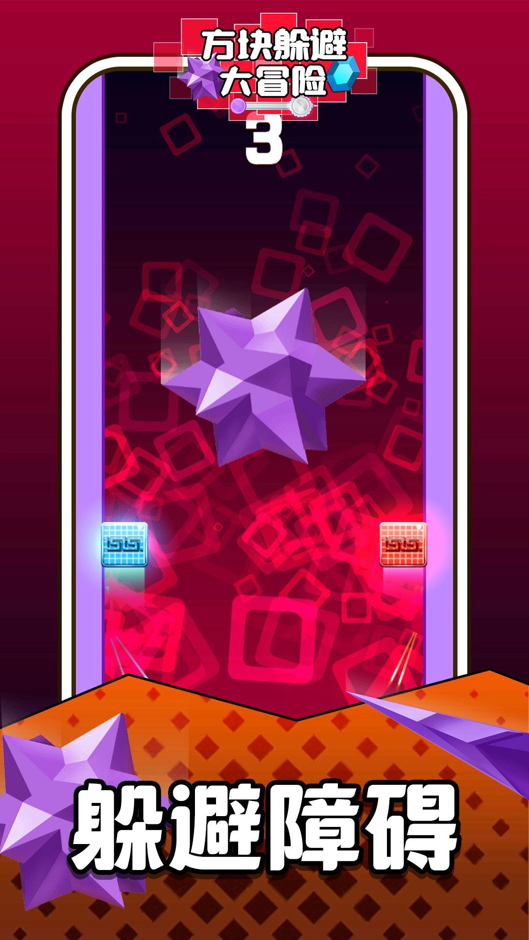 这是一款轻松有趣的休闲益智闯关游戏,操作简单却不乏挑战性。在方块躲避大冒险中,你需要灵活避开从两侧不断袭来的各种方块,同时尽可能收集关卡场景里的星星来积累分数。随着关卡的解锁,方块的移动速度会逐渐加快,障碍物类型也愈发多样,十分考验你的即时手眼协调能力与反应能力。