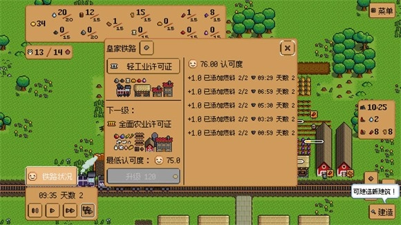 6、不断建造更多的建筑来扩大你的小镇范围,不断经营来打造最棒的铁路小镇。