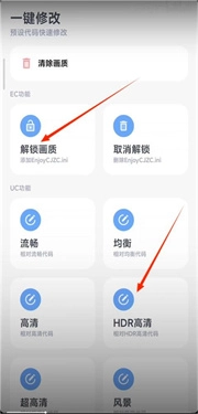 2、然后进入修改界面,点击解锁画质,然后选择画面清晰度,有流畅、高清、均衡等几种提供选择