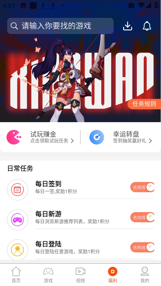 4、然后点击下方的“福利”,可以完成每天的日常任务,如图所示。