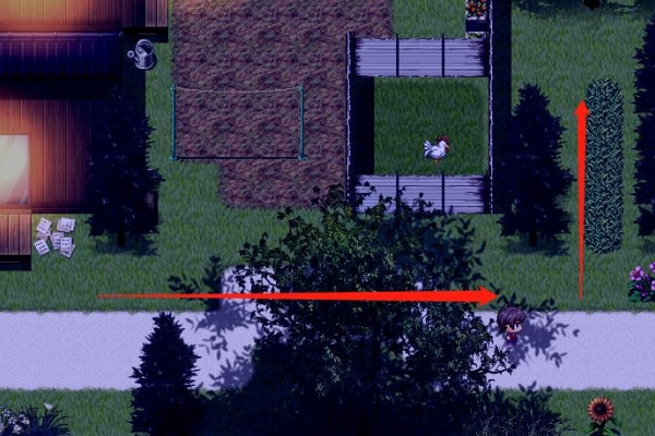 4、【晚上9点】出门走【右侧】,往上【绕路】,到达闭旁【房子后】。