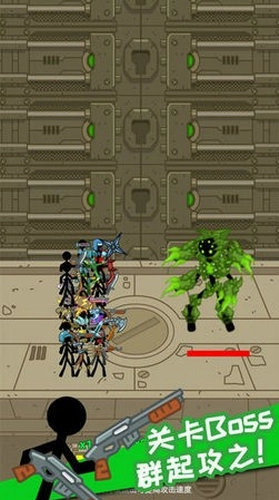 3、火柴人有很多武器,大部分都是步枪等武器,火柴人会自动射击你的敌人
