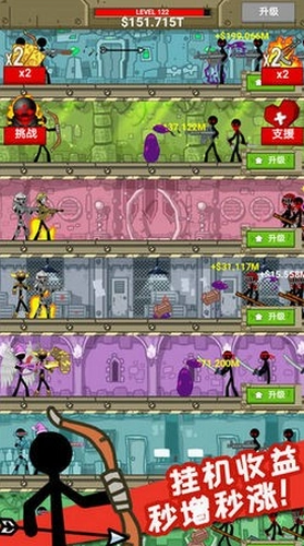 2、游戏的玩法简单,你只需要将你培养还的火柴人放置去参加战斗就可以了