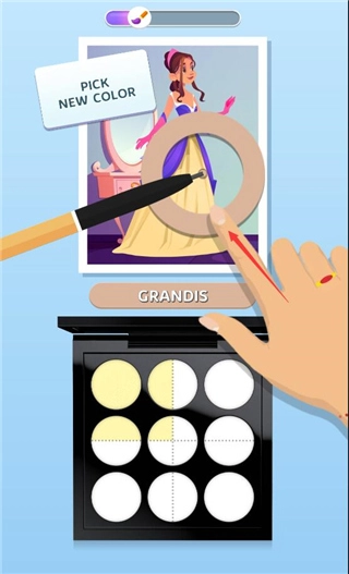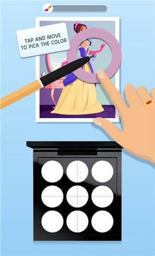 2、玩家在完成足够的颜色选择以后需要将有关的颜色填充到眼影盘