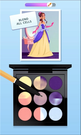 1、玩家需要从多种颜色中选择一些颜色来组成自己的眼影盘,完成过关需求