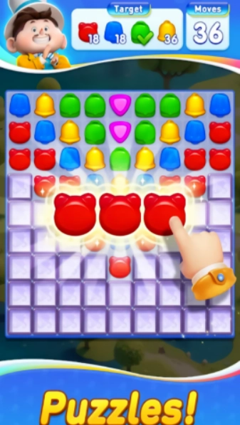 A: 关卡难度循序渐进,后期会更具挑战性。游戏中提供了多种强力道具(如爆炸、交换等),在卡关时合理使用可以帮助您顺利通关。