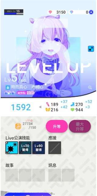 主要演唱会跟剧情的进展息息相关,并随难度而分区,通过后剧情就会开放,也会拿到报酬。而且由于主要演唱会不需消耗道具就能挑战,就算无法通关也能无限次挑战的设计非常体贴。