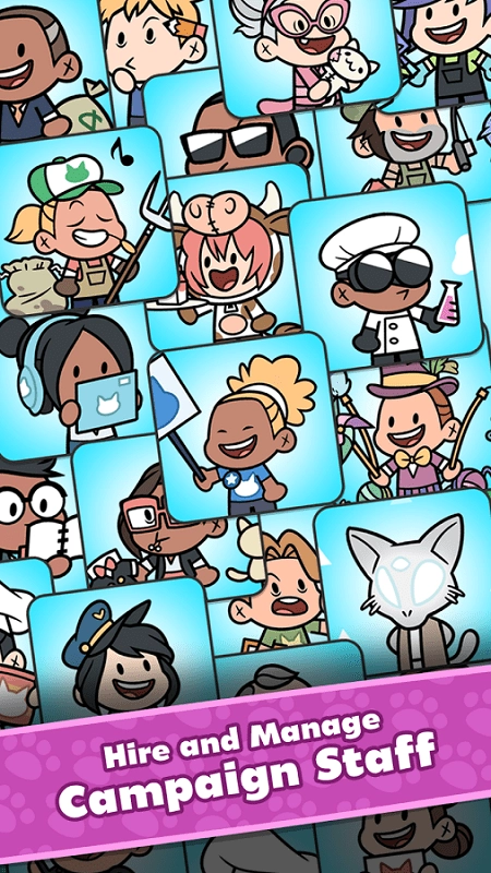 玩家将在游戏里体验猫咪独特的大选玩法,助力你的全球竞选活动,还能从知名猫咪那里获取支持!从低级统领起步,一路晋升到全球最高猫咪的位置。