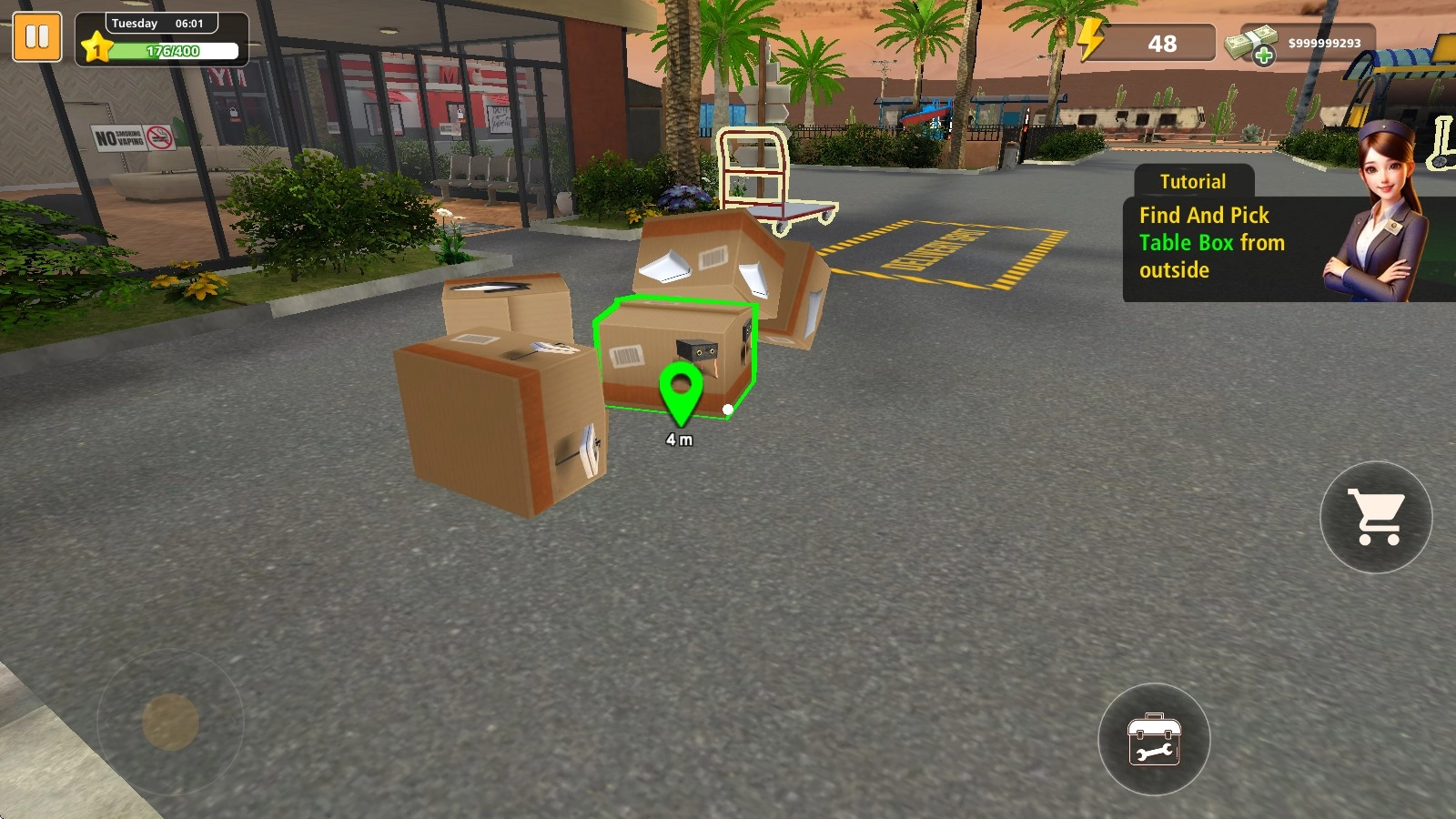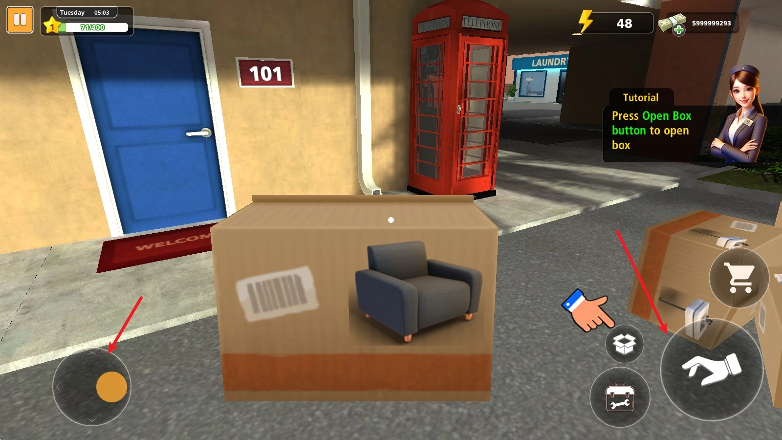 3、随后就会有货车送来家具,点击箱子即可拿起,拆开后就可以看到对应家具。