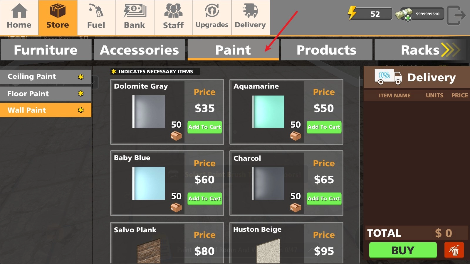 1、首先进入商店,找到paint分类,在这里能选购各类装修道具。