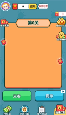 这是一款相当出色的汉字解谜闯关小游戏,不仅奖励丰富,还能考验玩家的汉字知识储备,此外还有闯关等多种福利可领取,助力玩家完成更多挑战,赢取更多红包。
