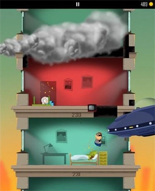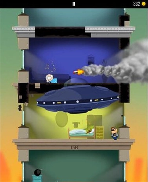 1、在向下跳的时候需要注意,如果看到有个躺在病床上的老人,那么就要小心了,他是外星人变的,只要跳到他那一层,UFO就会出来了。