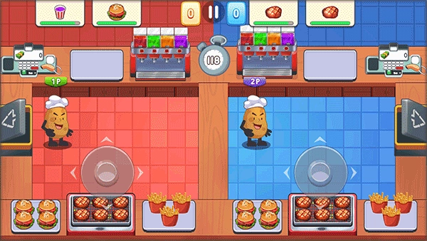 《双人厨房做饭》是一款主打模拟经营与烹饪玩法的休闲游戏。玩家可自由选择双人合作或双人对决模式,和好友一起协作完成烹饪任务,或是开启一场紧张的速度较量。游戏内配备了丰富的菜谱以及多样化的厨房设施,玩家需要在限定时间内完成顾客的订单,并且要及时处理各类突发状况,比如厨房起火或者设备出现故障。