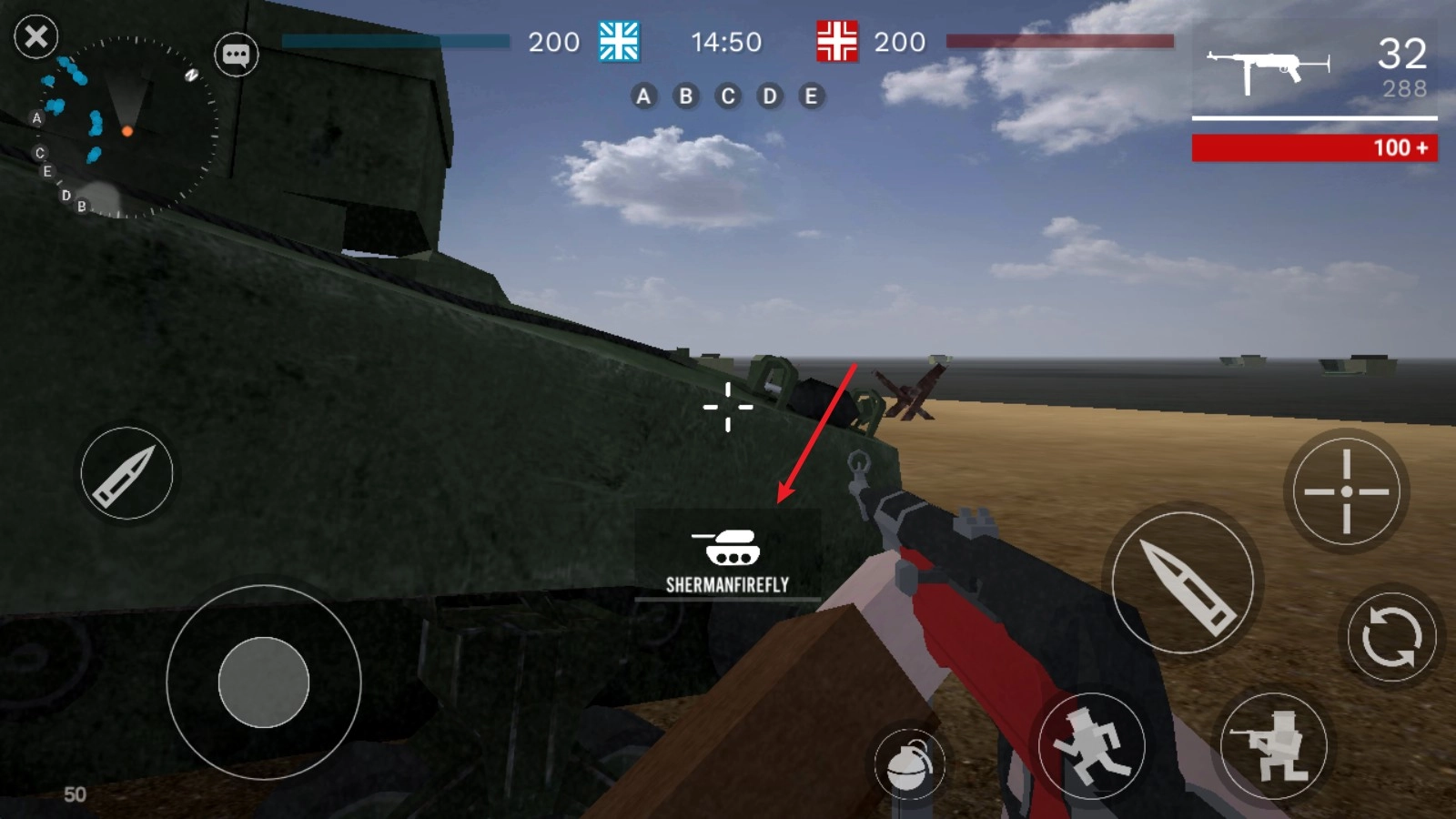 1、当靠近坦克时,中间会出现一个按钮,点击该按钮就能进入坦克。