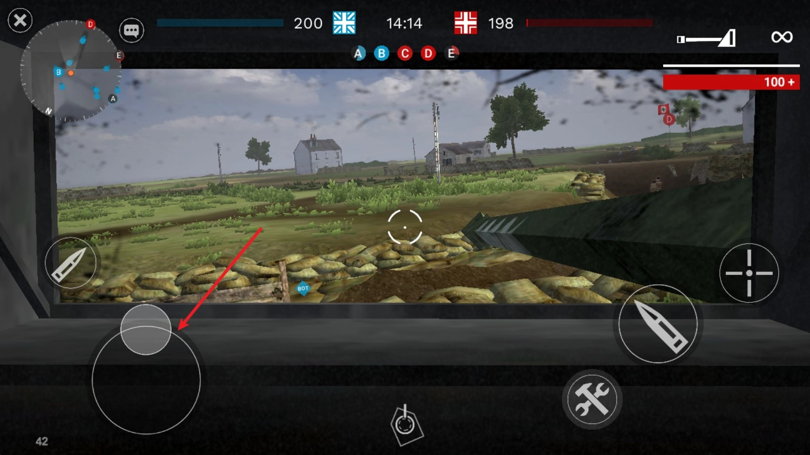 4、遭遇敌人之后,点击右侧瞄准键即可架枪进行瞄准,点击子弹就可以开枪射击了。