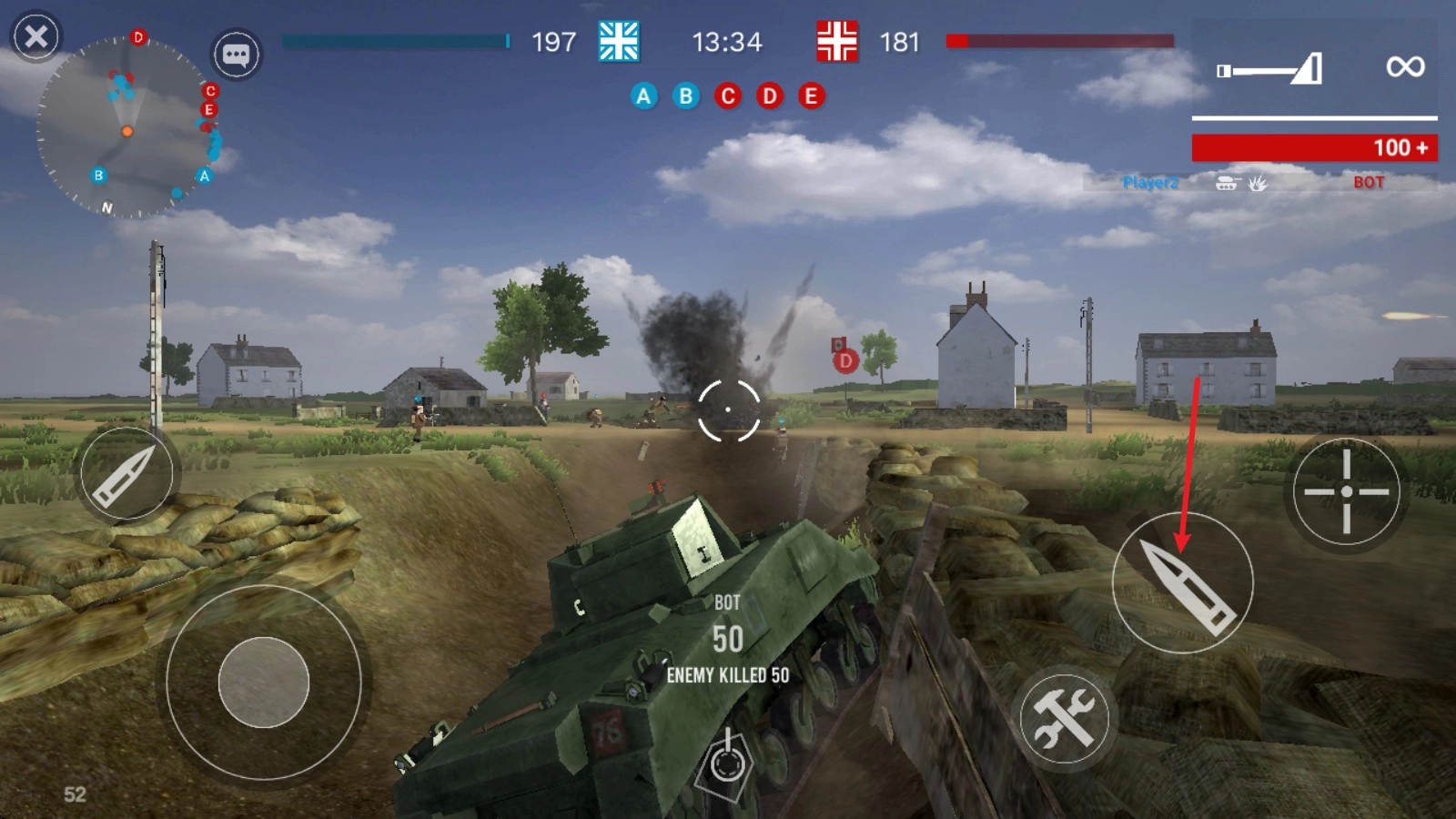 4、瞄准敌人后点击子弹键就可以控制坦克开炮了。