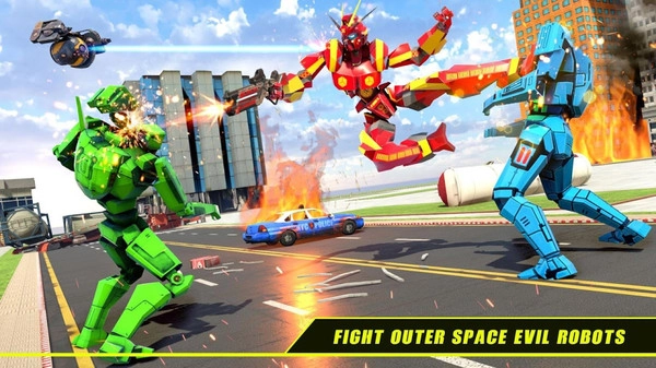 终极坦克机器人游戏。原本仅在陆地城市场景中的机器人及其技术转化,如今随着飞行机器人与飞行汽车的转型,您将体验到震撼的机器人警察坦克机器人战斗转换。