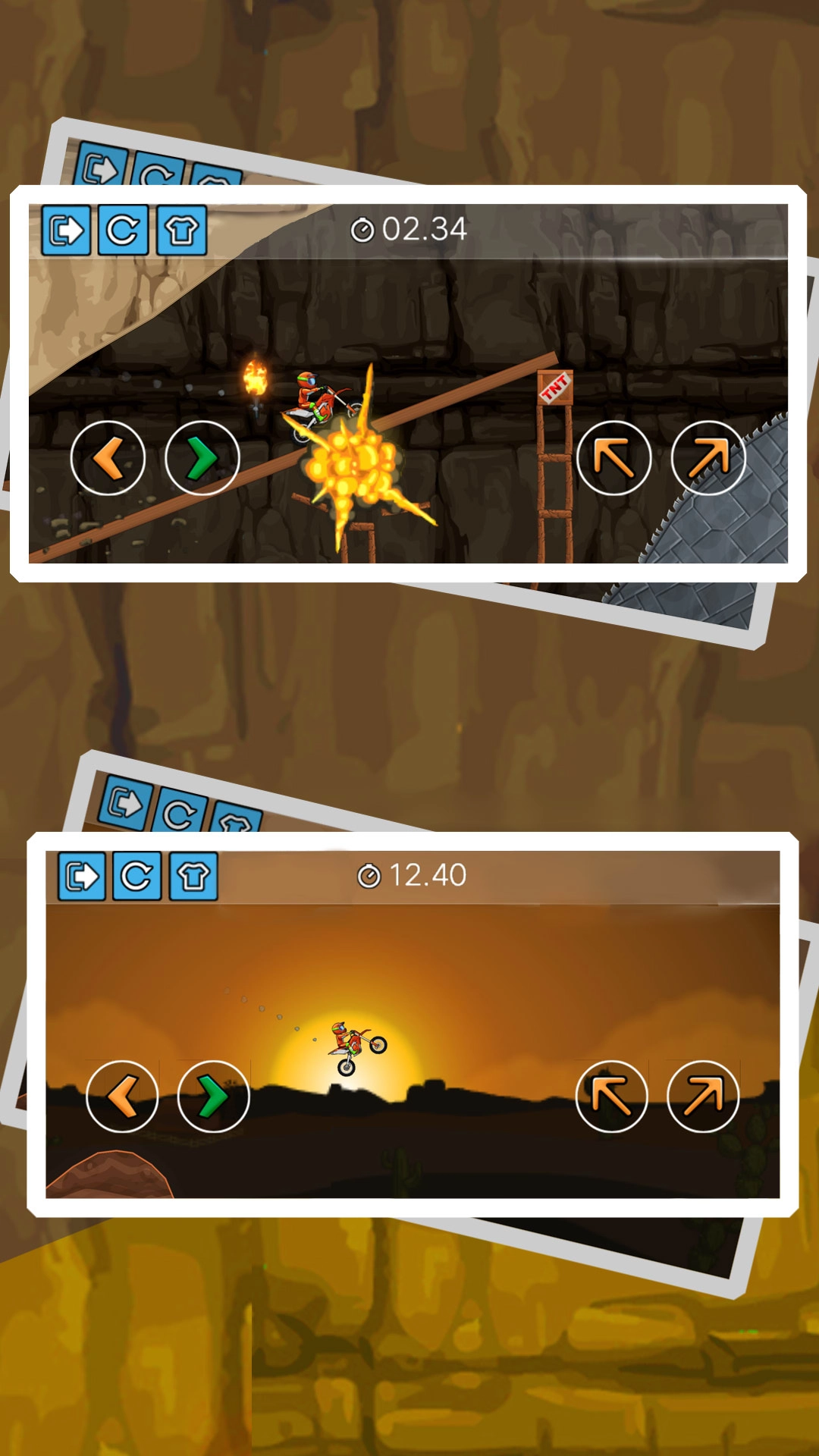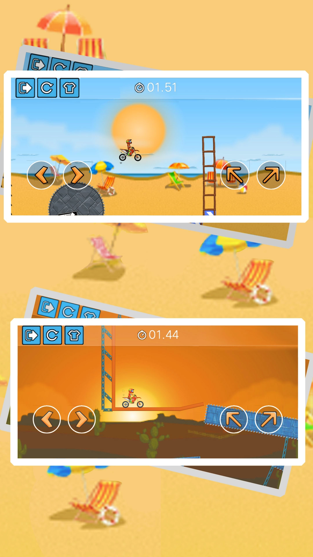 1、在游戏里你要驾驶摩托车参加障碍赛,每个地图都会出现不少障碍物,得熟练操控摩托车来穿越这些障碍物。