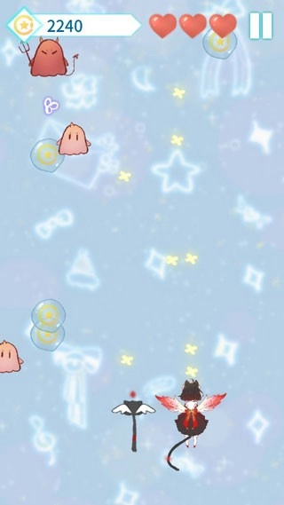 这款游戏以十分萌系少女的粉色和各种色系组成了这个奇特的冒险世界。游戏中玩家可以控制你的人物带上你的猫咪在这个异世界中进行各种射击。