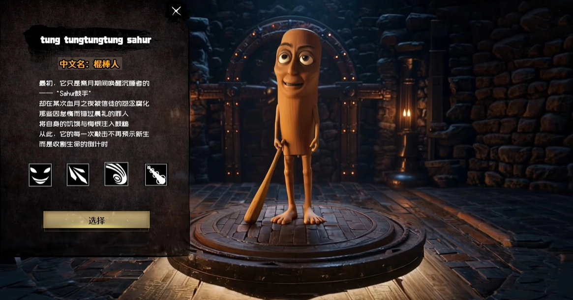 1、游戏里的主角是热门角色Tung Tung Tung Tung sahur木棍人