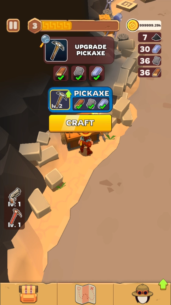5、通过不断升级工具来开凿出道路,解锁全新的区域。