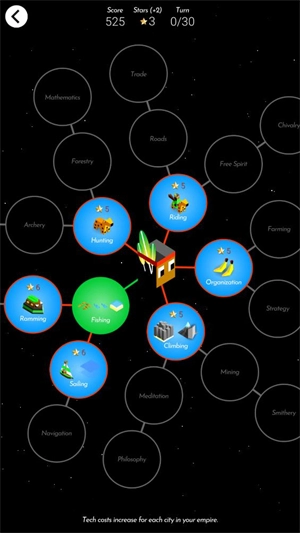 6、点击下方的tech tree可以打开科技树,能消耗星星来解锁不同的科技。