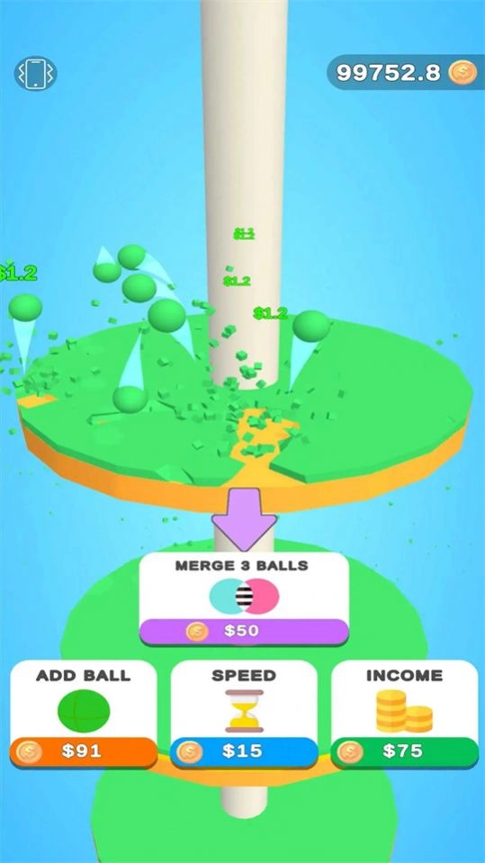 2、利用球体重力施展技巧,粉碎目标并收集金币。