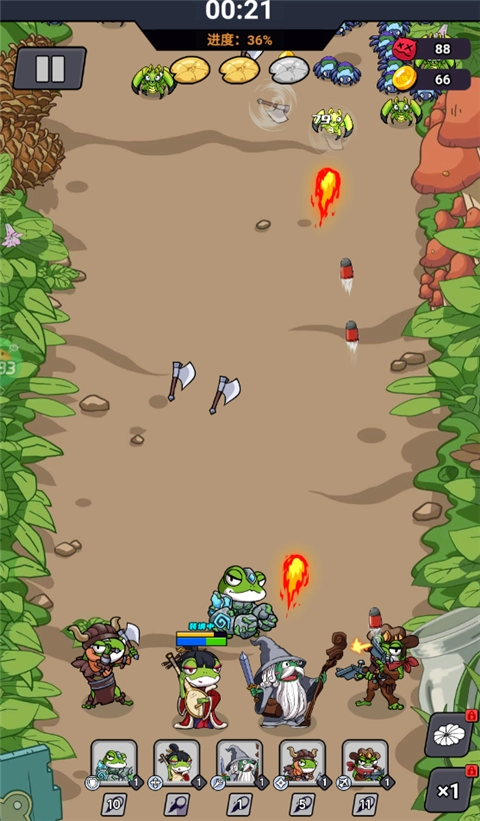 1、游戏可以选择不同的青蛙进行各种策略摆放,完成有关战斗