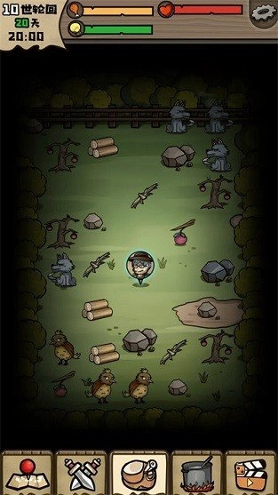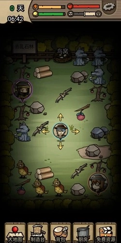 3、场景中有树木、水果、野兽等丰富的资源。玩家必须自力更生,勇敢地面对每一次挑战。