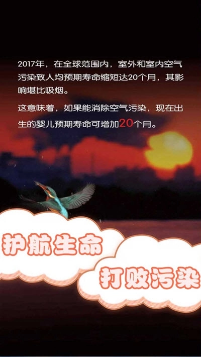 游戏画面简洁明快,角色设计清新可爱,同时融入了污染物的相关介绍,以此来提醒人们关注并重视空气污染问题。