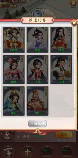 2、游戏中拥有门客玩法,玩家可以招募门客后将门客安排在产业当中,提升产业的产能