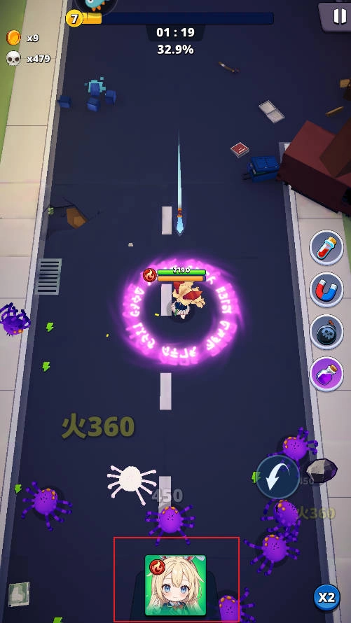 2、游戏中角色发现敌人会自动攻击,咱们只需要滑动屏幕控制角色移动即可,操作非常简单。