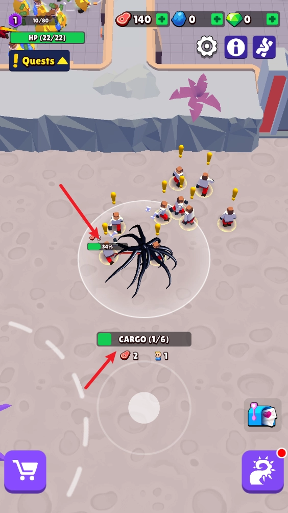 1、进入游戏后,我们通过下方的虚拟摇杆控制毒液移动,靠近NPC时还能接取任务。