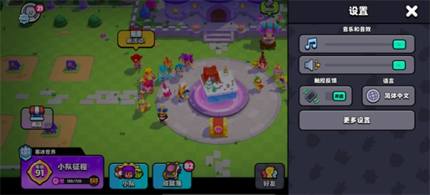 设置:这里可以设置当前游戏语言、音乐音效以及调整触控反馈提升自己的游戏体验