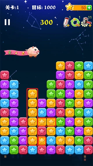 2.只要是颜色一样的星星连在一起我们就可以点击消除。