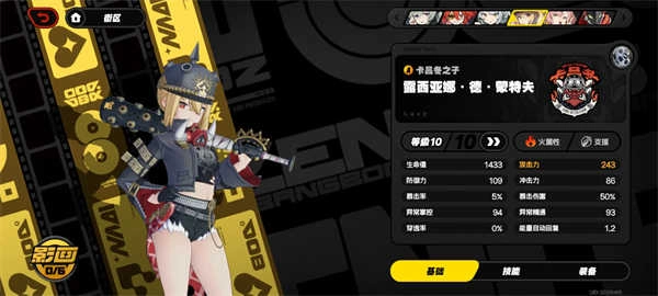 角色面板显示共包含9种基础属性,可通过升级、进阶、装备配置等方式进行提升。还有一些隐藏数值如抗打断能力、能量回复速度、失衡效率等,则需通过技能升级来增强。