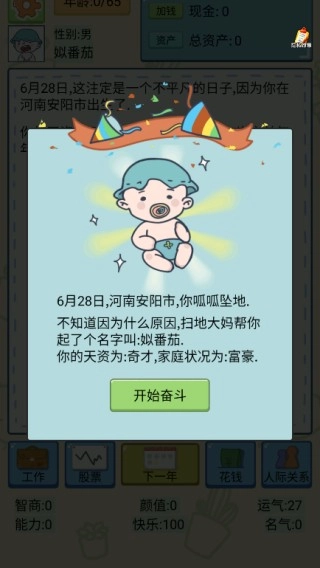 2.如下图所示,你将可以随机获得不同的出生设定。