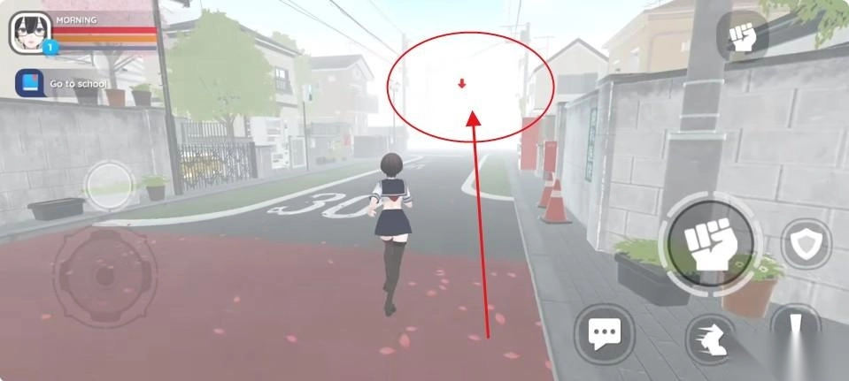 2、转动视角,切换跑步、行走、攻击,熟悉操作之后看到红色箭头,跟着箭头行动。