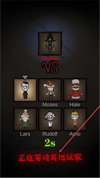 3、选定角色后进入匹配界面,此时界面显示正在等待其他玩家,需等待倒计时结束或其他玩家加入以开启对局。