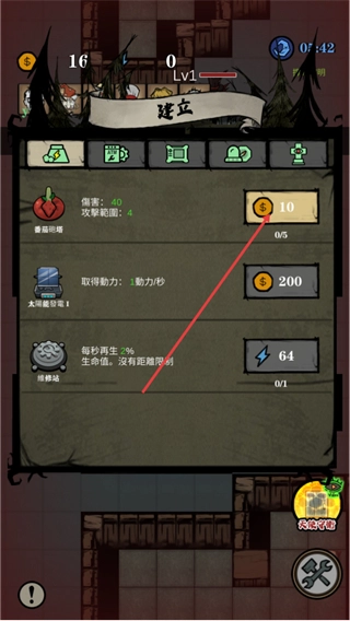 4、进入安全房屋后在建立界面中,消耗10金币可解锁番茄炮塔,该建筑拥有40伤害与4攻击范围,可用于对局中的防御布置。