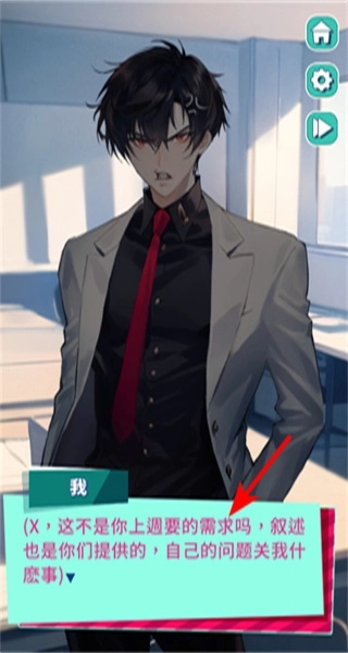 2、在剧情对话界面,依照红色箭头指引,点击对话区域推进剧情内容,解锁后续的游戏环节。